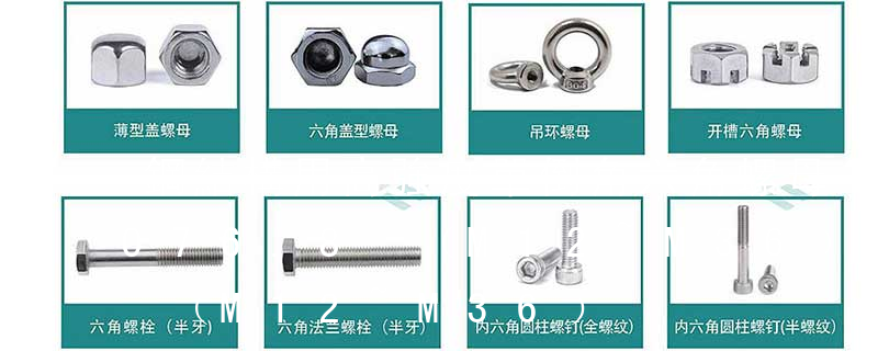 11. 組合件和連接副:組合件是指組合供應的一類緊固件,如將某種機器螺釘(或螺栓、自供螺釘)與平墊圈(或彈簧墊圈、鎖緊墊圈)組合供應;連接副指將某種專用螺栓、螺母和墊圈組合供應的一類緊固件,如鋼結構用高強度大六角頭螺栓連接副。 2型六角開槽螺母-A和B級GB/T6180-86M5~M36 六角開槽薄螺母-A和B級GB/T6181-86M5~M36 鋼結構用高強度大六角螺母GB/T1229-91M12~M30 1型六角開槽螺母-細牙-A和B級GB/T9457-88M4~M36 2型六角開槽螺母-細牙-A